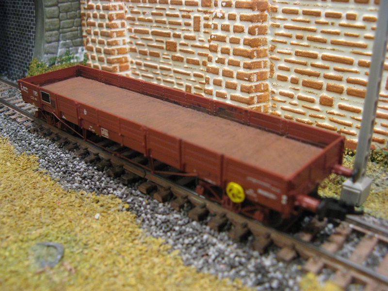 Wagon plat Rklmm TP à ridelles basses Ree WB 396 en très bon état.