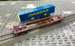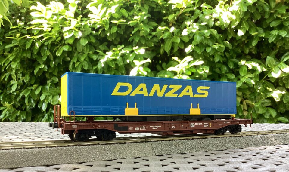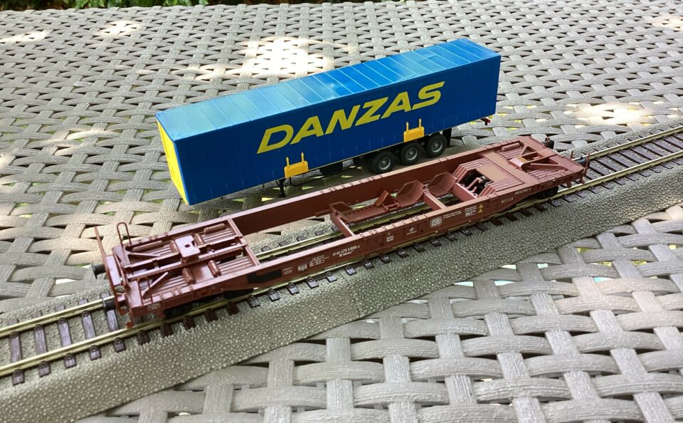 Wagon poche DB chargé d'une remorque à 3 essieux "DANZAS"