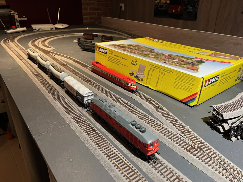 Vends lot de Modelisme ferroviaire état neuf (peu servi cause maladie) comprenant une locomotive digitalisée allemande diesel Roco avec 3 wagons marchandise, un autorail Jouef digitalisé, 1 wagon nettoyeur de voies Roco, 6 wagons à ridelle, 3 wagons voyageur, ensemble de voies Rocoline avec ballast, 10 aiguilles motorisées, 1 centrale Z21 et sa multimaus, 1 routeur pour application sur tablette,instruments divers