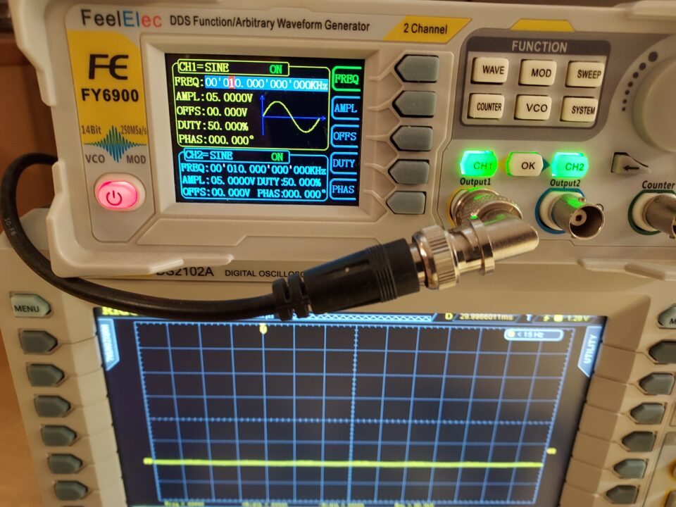Ensemble de laboratoire : oscilloscope Rigol DS2102A et générateur FY6900-60M