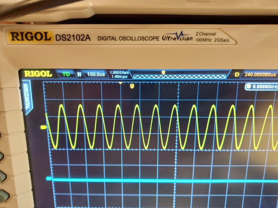 L'oscilloscope Rigol DS2102A dispose de 2 voies avec bande passante de 100 MHz et d'une fréquence d'échantillonnage jusqu'à 2 GSa/s. Les mesures peuvent être observées sur l'écran LCD de 8”, mais le dispositif DS2102A peut également être connecté à un PC afin de transférer les résultats des mesures. Les résultats des mesures peuvent en outre être enregistrés sur une clé USB par le biais du port USB situé à l'avant de l'oscilloscope.