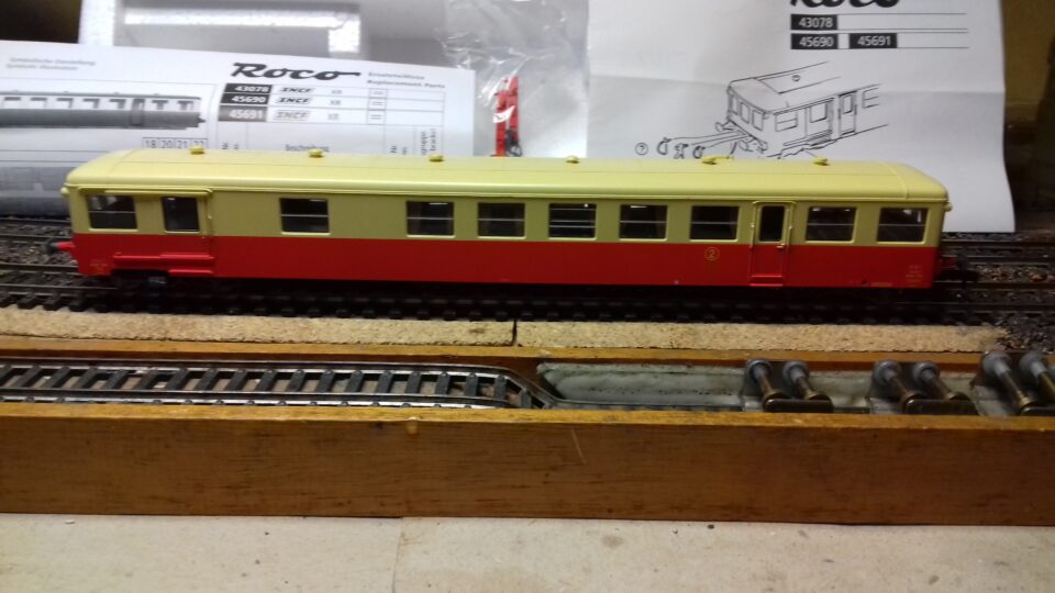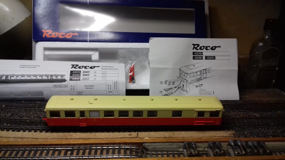 ROCO remorque autorail 2cl XR 7800 TC Decauville XRBD 7951 ( Toulouse) en BO en parfait etat ref 45690 avec fiches technique accesoires à monter eclairage interieur reglement par cheque port en sus 7€