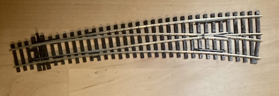 Aiguillage courbe à droite code 100 Peco SL86 Insulfrog (coeur non polarisé) traverses marron imitation bois pour modélisme ferroviaire à l'échelle HO 1/87 ème. Pointe de cœur de l'aiguillage en plastique. Longueur de 258 mm. Angle extérieur de 9,5°. Angle intérieur de 20,5°. Rayon extérieur de 1524 mm. Rayon intérieur de 762 mm.