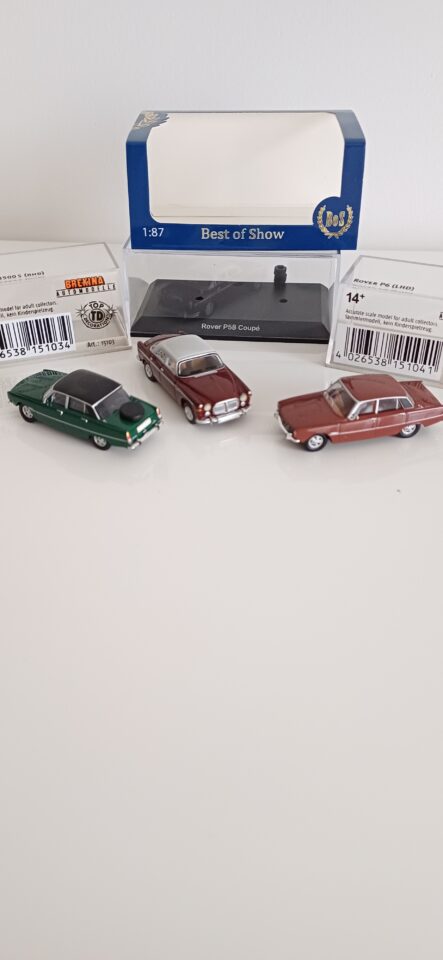Lot de 3 ROVER strictement neuves, état collection : BREKINA Rover P6 etV8 3500S et ROVER P58 Coupé en résine BOS Models.