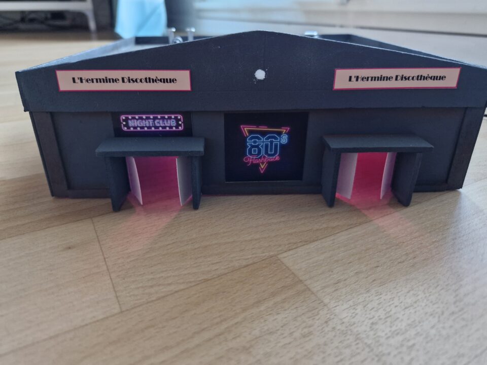 Vend discothèque Ho réalisé par un modéliste, musique années 80-2000,avec lecteur MP3 ,LED et HP avec notice.