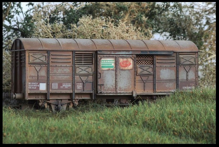 Wagon couvert Jouef Sernam 2 essieux patiné avec beaucoup de soins et de détails …