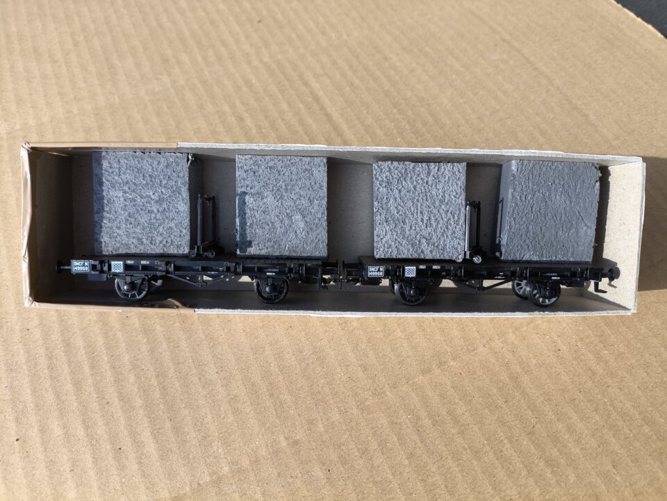 Couplage de wagons plats à traverses pivotantes pour charges longues. SNCF, n° 149968, époque III. Marque FLEISCHMANN, référence 5222 F. - (HO Matériel Remorqué)