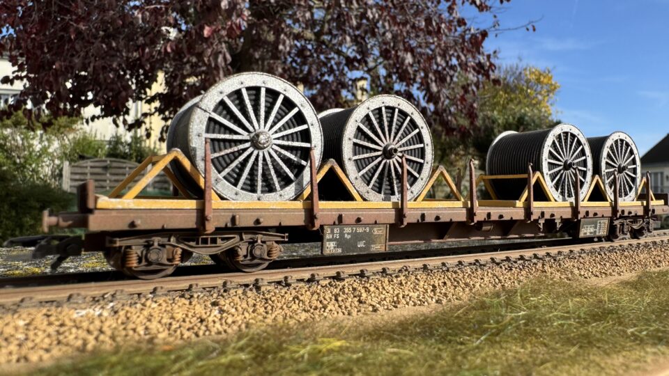 Eldabe Wagon plat Rvarossi patiné avec tourets de câble