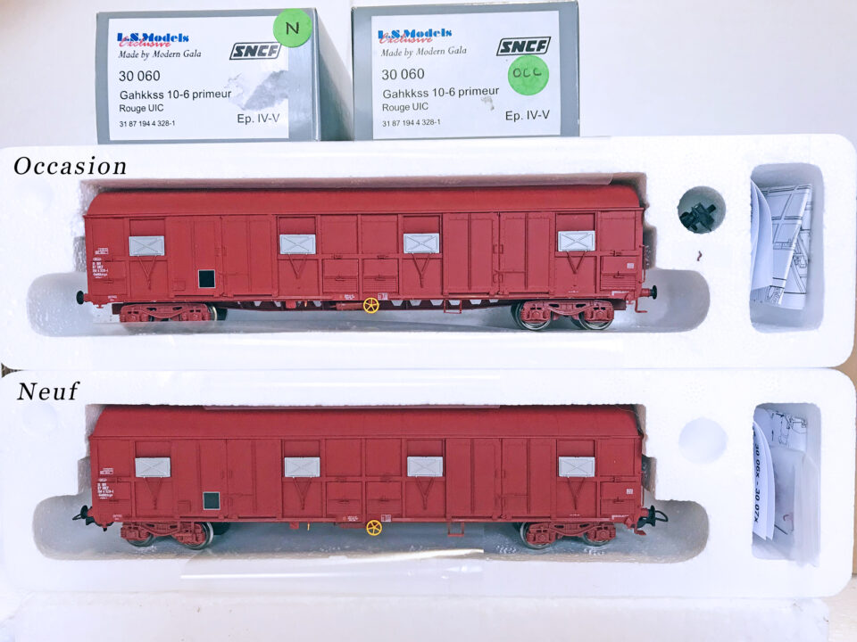 Vends, échelle HO 1/87ème, une paire non dissociable de 2 wagons marchandises couverts à bogies type "Gahkkss" ou "10-6 Primeur", époque 4/5 SNCF, attelages à boucle NEM avec élongation, marque LS Models (LSM), référence 30060, immatriculés sous le n° 31 87 194 4 328-1.