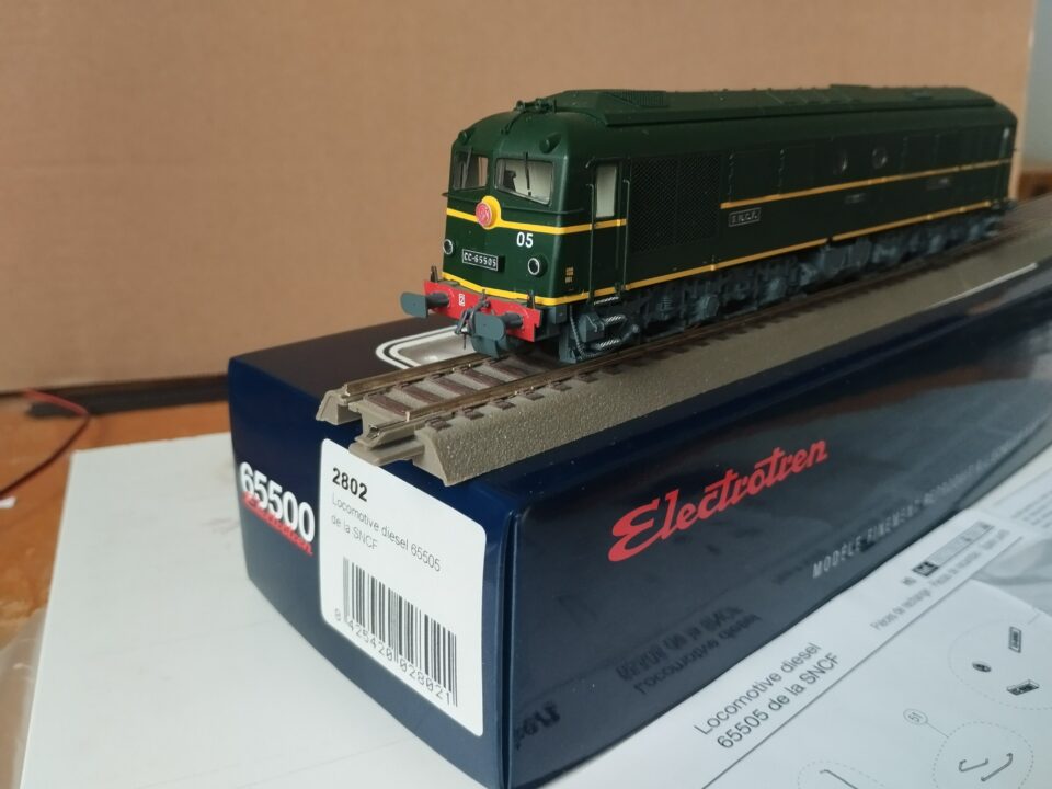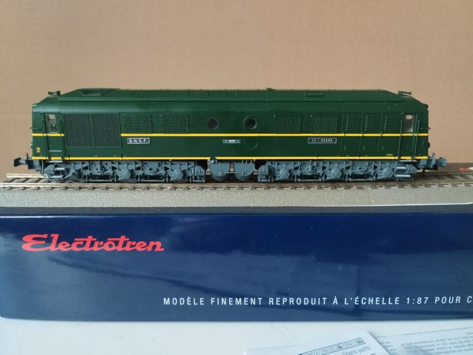 CC 65505 Electrotren et réf 2802 en digitale. Motrice en état neuf, jamais utilisée sauf tests à l’achat et pour la vente. Décodeur ESU 53611. Ventilateur testé et fonctionnel. Il manque le bouchon shunt, égaré, mais elle fonctionne très bien courant CC si vous le souhaitez. Sachet détail non ouvert.