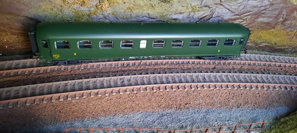 Voiture voyageurs 2ème classe SNCF « Rapide Nord » - type B9 à compartiments et aménagement intérieur – attelages à élongation variable – caisse et toit verts – époque III – marque LSModels – 60€ + port.