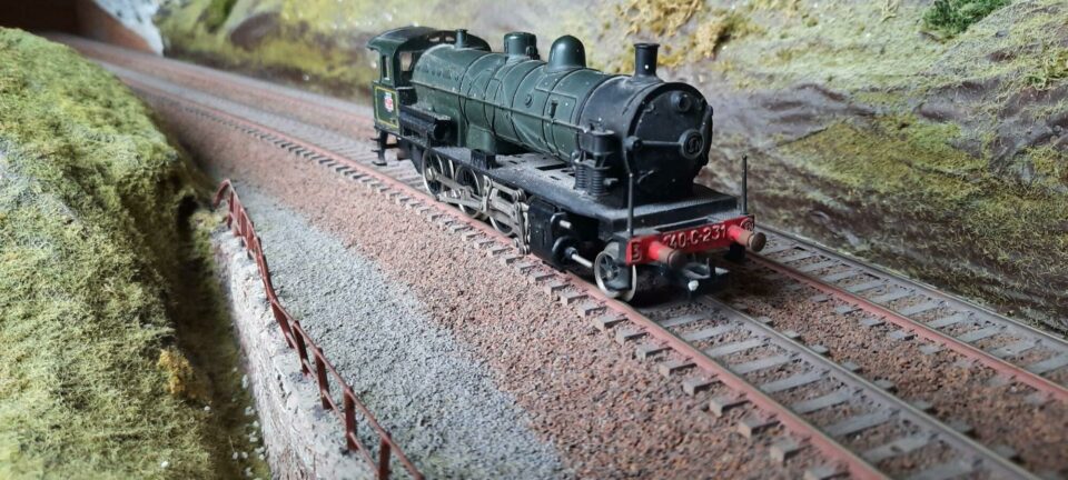 Loco vapeur 140 C 231 SNCF - sans le tender - caisse verte/noire - châssis noir - lettres blanches sur fond rouge - dépôt de Nantes - région Ouest (3) - traverse de tamponnement avant rouge - équipée d'1 ski pour fonctionnement en système 3 rails courant alternatif - le moteur semble réagir mais l'engin est bloqué (raison = ?) - donc usage essentiellement pièces détachées (ou remise en état de fonctionnement normal, en courant alternatif ou en courant continu en retirant le ski et en procédant aux modifications nécessaires) - marque JOUEF - 20€ + port.