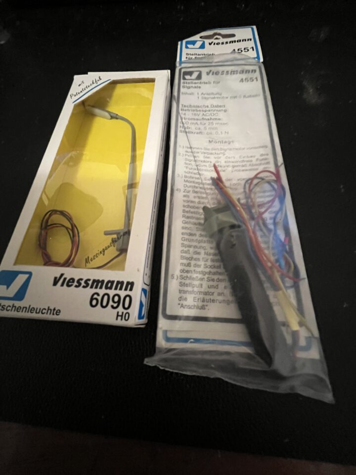 Moteur pour mouvement signaux mécaniques HO Viessmann Ref 4551 état neuf et lampadaire Viessmann Ref 6090-Jamais utilisé.