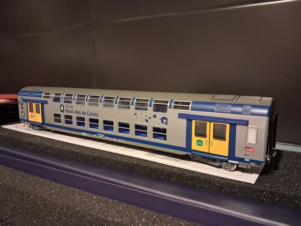 Je vends cette voiture voyageurs VO2N Vitrains 3167 livrée Nord Pas de Calais, 2ème classe, logo carmillon SNCF.