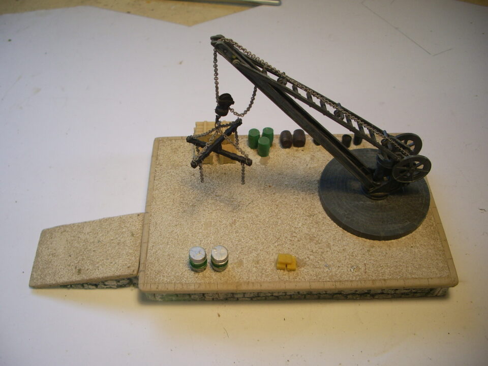 Grue de quai HO monté sur socle avec son chargement.
