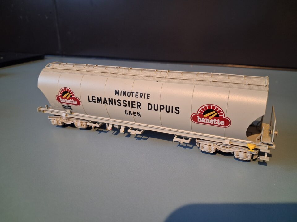 Vends ce wagon trémie céréalier à parois bombées SNCF Banette Minoterie Lemanissier Dupuis issu du coffret HJ6132, immatriculation 33 87 933 5 532-6.