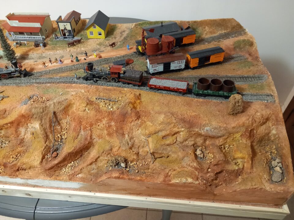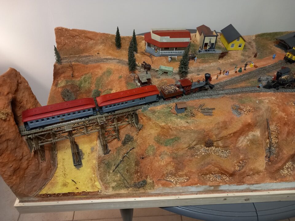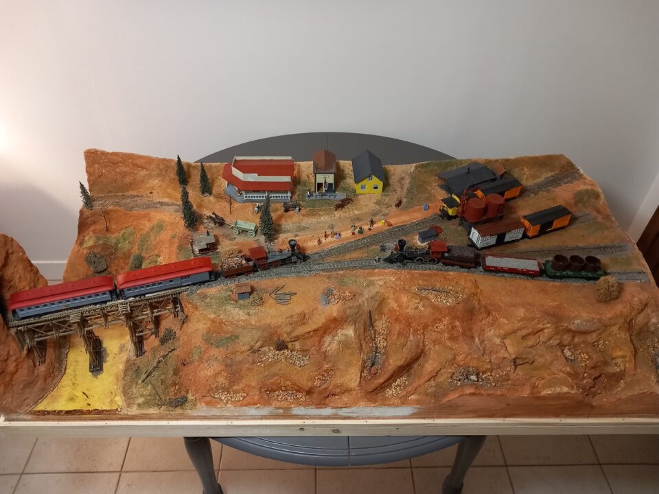Mon papa était un passionné de trains américains et de modélisme. Dans les années 60/70, il passait des commandes directement aux Etats Unis et a construit cette maquette.