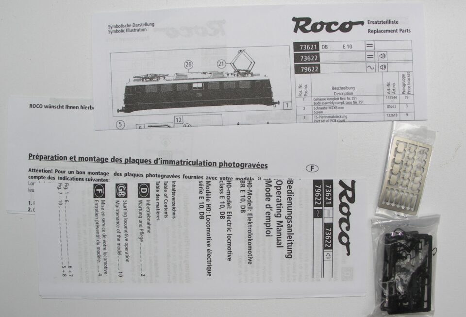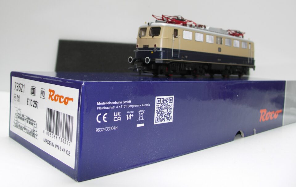 Locomotive Roco analogique (courant continu) de la DB E10 251 état neuf ref 73621. Machine prévue pour tirer le Rheinpfeil ou le Rheingold. C'est une première main, n'a jamais été exposée et n'a jamais roulé. Elle est toujours restée dans sa boite depuis son achat en 2023. Interface Plux22.