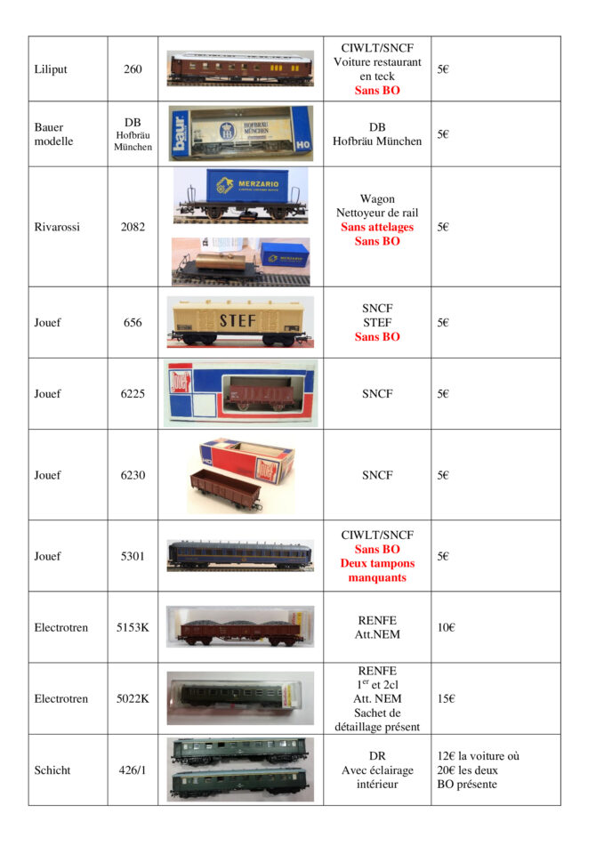 Wagons HO à 5€ pièces, les dernières pièces, Roco, Fleischmann, Trix, Liliput, Electrotren, Bauer modelle, Rivarossi, Jouef, Schicht - (HO Matériel Remorqué)