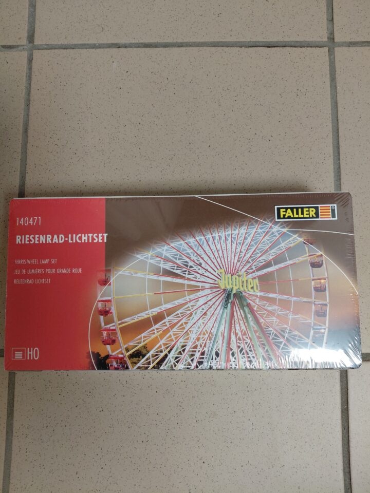 Vends jeu de lumières FALLER adaptable à la grande roue (140470) éclairage des 36 gondoles, de l'enseigne Jupiter et des supports avant.