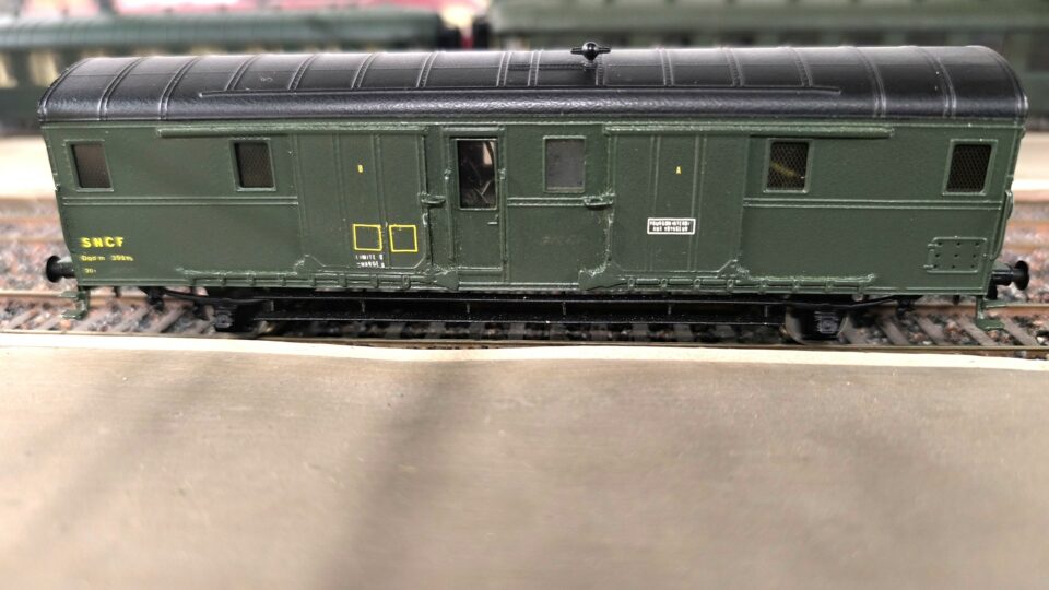 Locodiffusion, fourgon OCEM époque 3. Parfaitement monté, tampons à ressorts, attelages à boucles sans élongation, feu rouge fonctionnel.