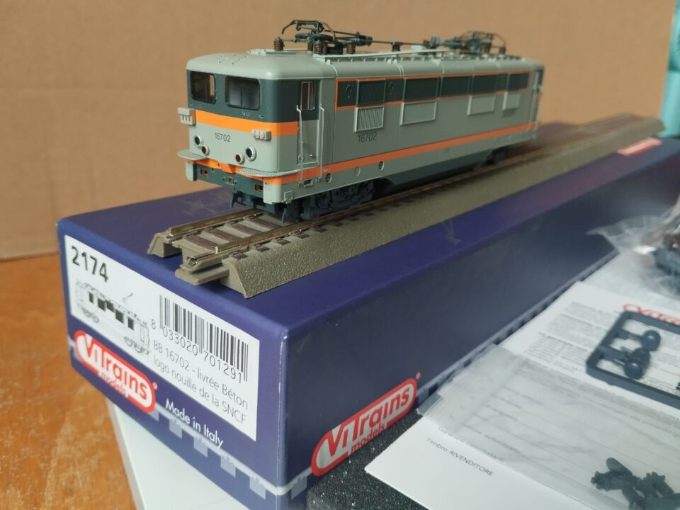 _ Vends en HO une BB 16702 « livrée béton » Vitrain réf 2174 en analogique. Machine jamais utilisée et juste testée à l’achat et pour la vente. Sachet détail non ouvert et tampons ressort en sachet.