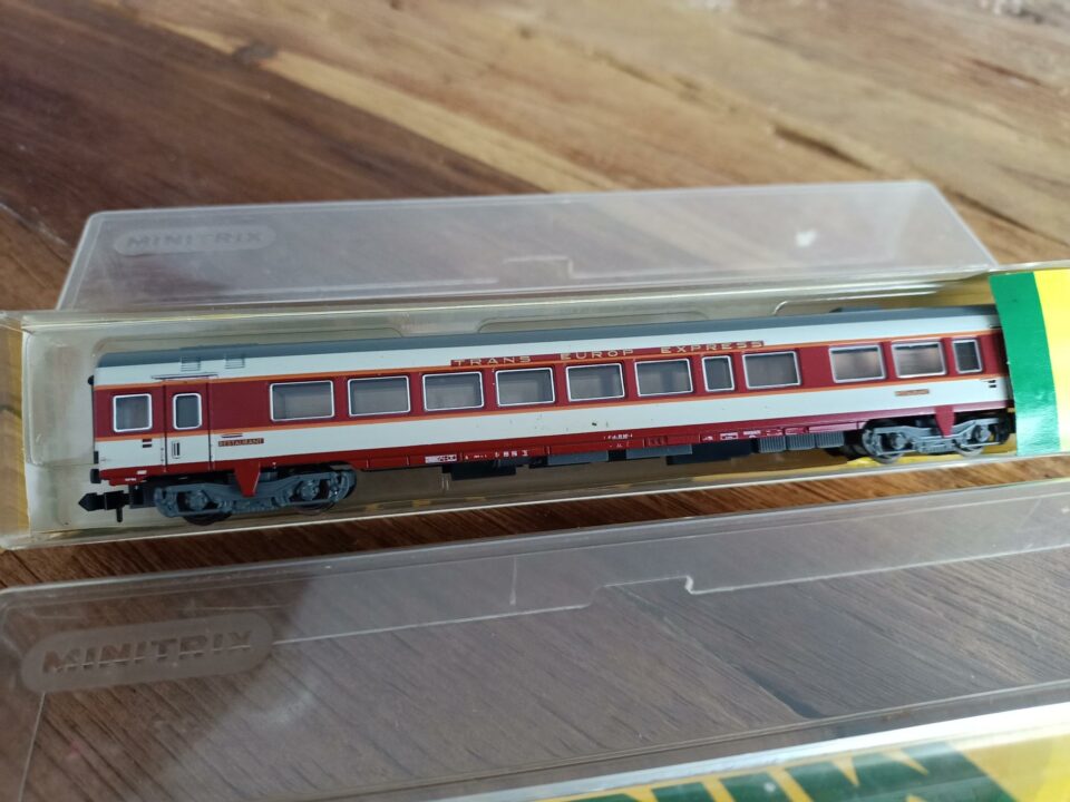 Vends deux voitures Grand Comfort TEE SNCF de Minitrix époque 4 version béton.