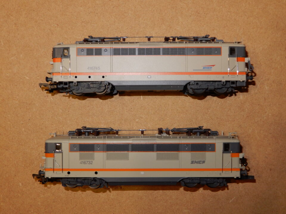 HO - UM de BB 16.500 SNCF de chez LS-Models - réf 10.155 -> BB 16.732 avec grandes persiennes + réf 10.165 -> BB 16.745 avec petites persiennes - livrée béton - très bon état - boite d'origine - analogique - chaque locomotive possède 1 attelage conducteur Viessmann, de ce fait la prise de courant, pour chacune des 2 machines, se fait par les 8 essieux - 500€ les 2 - règlement par virement - si envoi, prévoir des frais pour le port