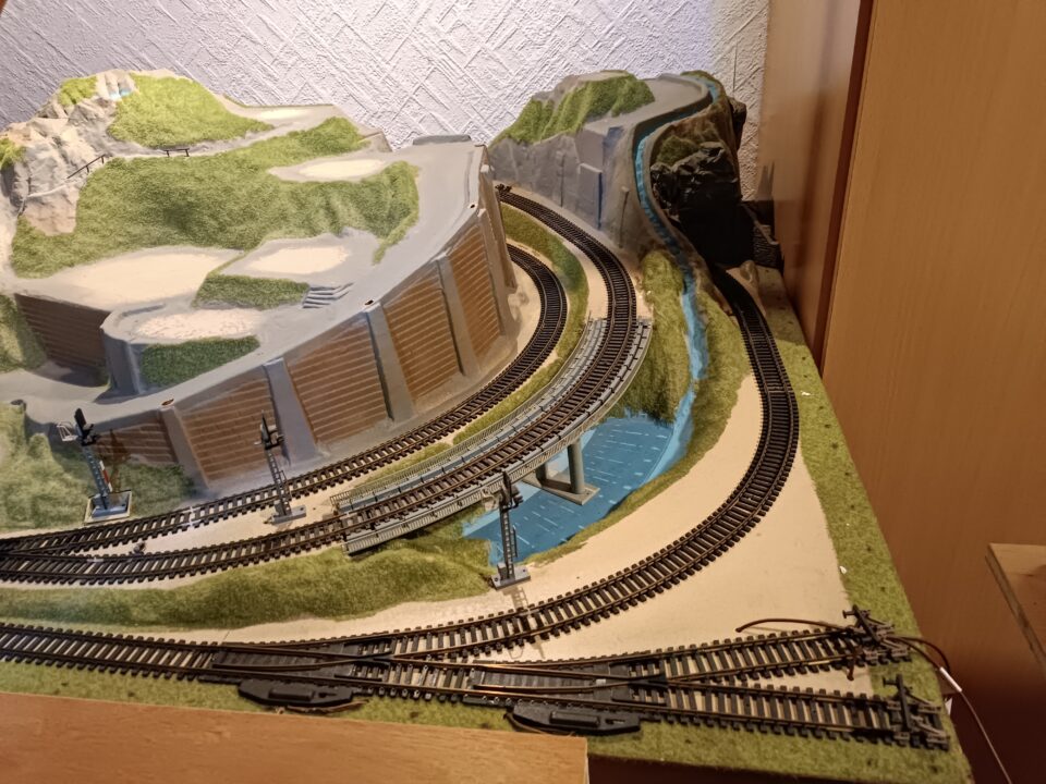 Plateau-décor KIBRI (5094) de 1,5m x 1m complet en parfait état, équipé en voies Fleischmann et automatisé.