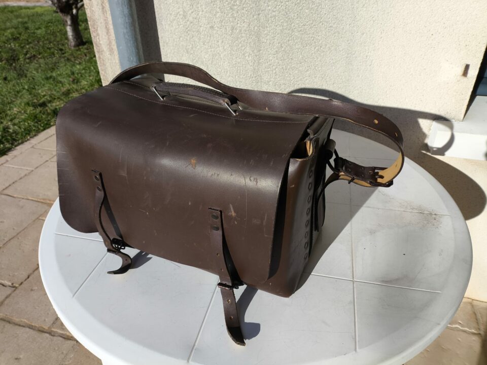 sacoche en cuir de mécanicien SNCF. Fin des années 60.