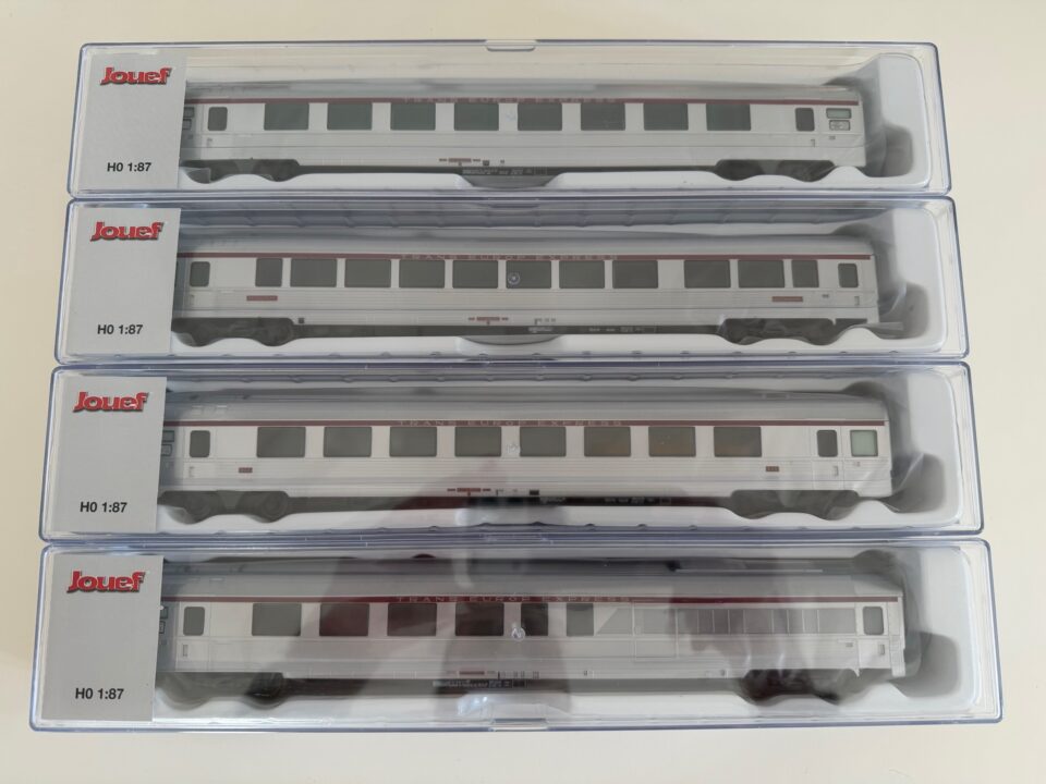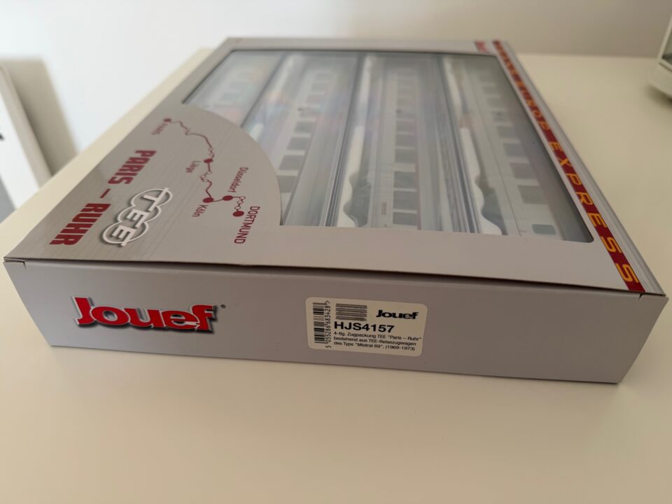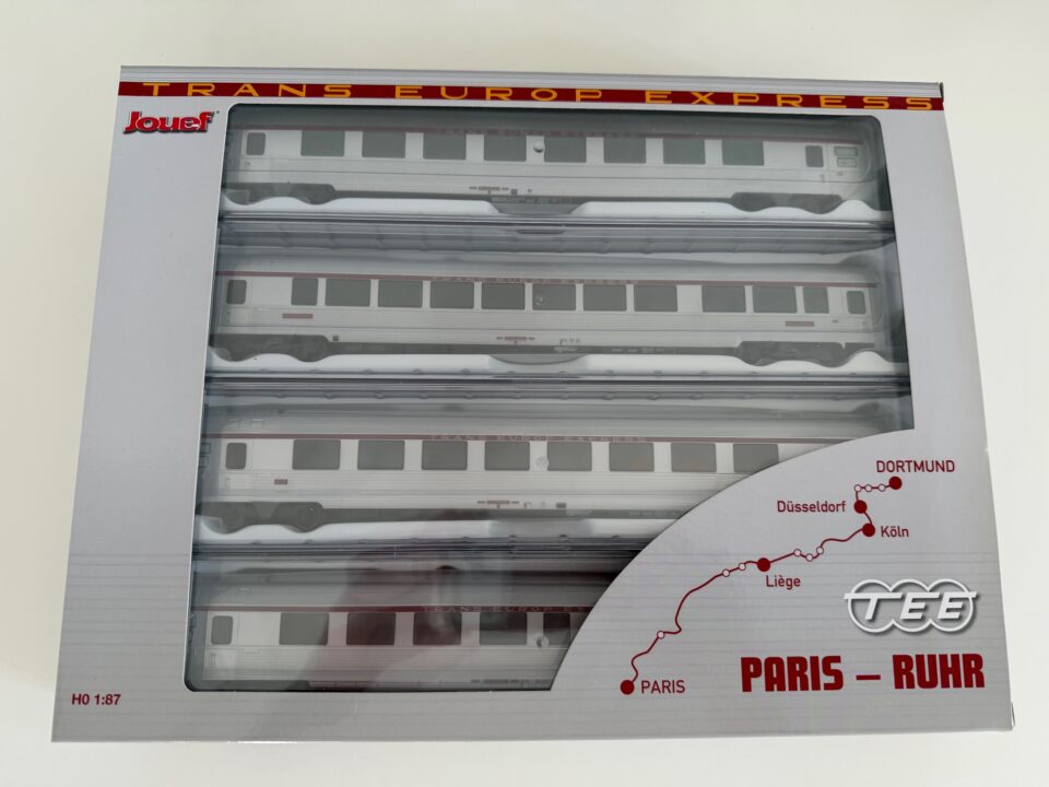 Rare coffret neuf de 4 voitures SNCF Mistral 69 TEE "Paris-Ruhr" (Jouef HJS4157) - (HO Matériel Moteur)