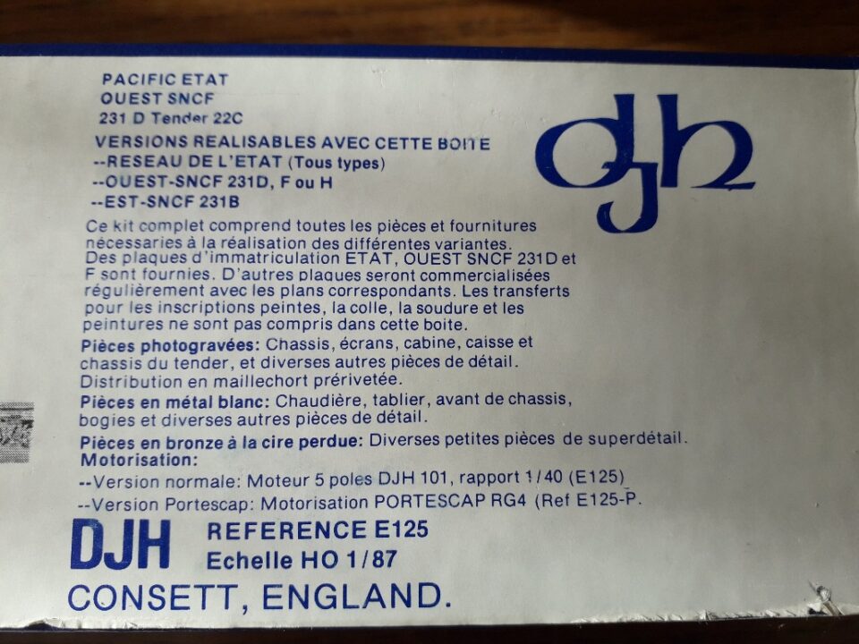 Kit DJH model loco ref E 115 pour la construction d'une 231A + 37 A Nord à l'echelle HO - (HO Matériel Moteur)