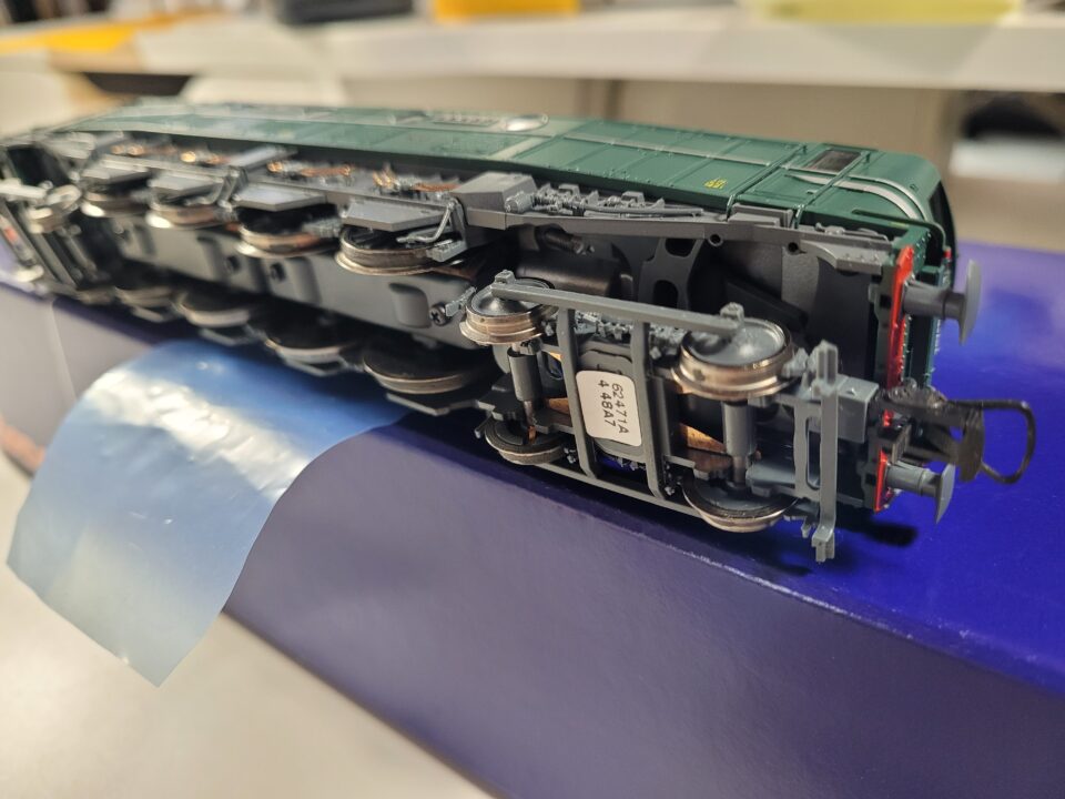 NEUVE (jamais roulé, sortie de boite juste pour les photos 🙂 : locomotive électrique marque ROCO, type 2D2 immatriculée 9126 (GRG) Ref 62471, Echelle HO, Epoque IV Analogique digitalisable, sachet de détaillage à monter, 4 essieux moteurs dont 2 avec bandage, Attelage selon la norme NEM 362 , Feux leds avant/arrière: blanc et rouge réversibles. Longueur hors tampon : 208mm, Masse : 443g Attelage à boucle universelle, Dans sa boite d'origine,avec toutes les notices, Frais de port en sus, Règlement par chèque bancaire ou Paypal entre proches, uniquement.