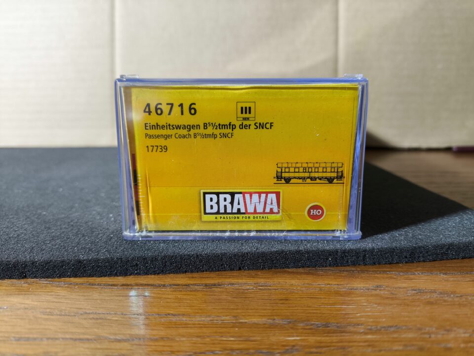 Voiture voyageurs SNCF "boite à tonnerre" B 51/2 tmfp n° 17739. Epoque III. Marque BRAWA , référence 46716. - (HO Matériel Remorqué)