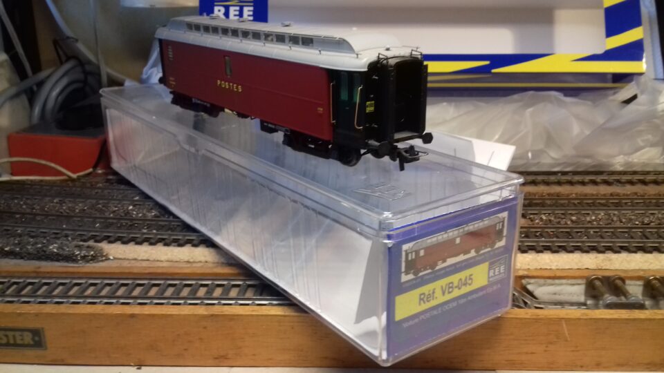 REE ref VB 045 voiture postale 16 M OCEM epIII bogie Y 2 rouge foncé toit gris clair en BO et en parfait etat reglement par cheque port en sus 7€