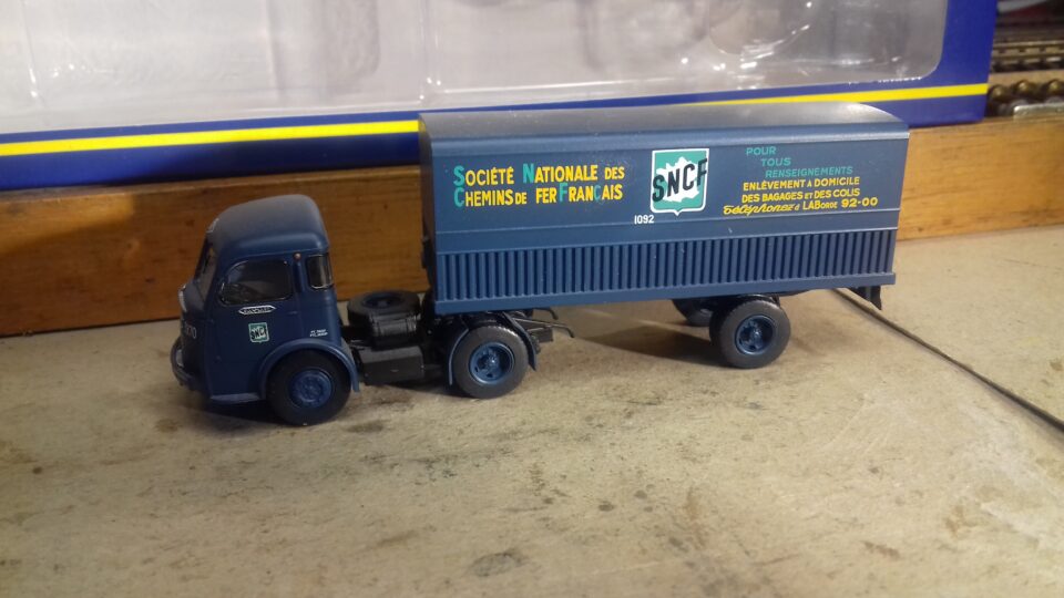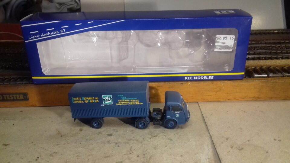 REE semi remorque Panhard Movic en BO ref CB 027 avec calandre modrne STA bleu SNCF en parfait etat reglement par cheque port en sus 6€