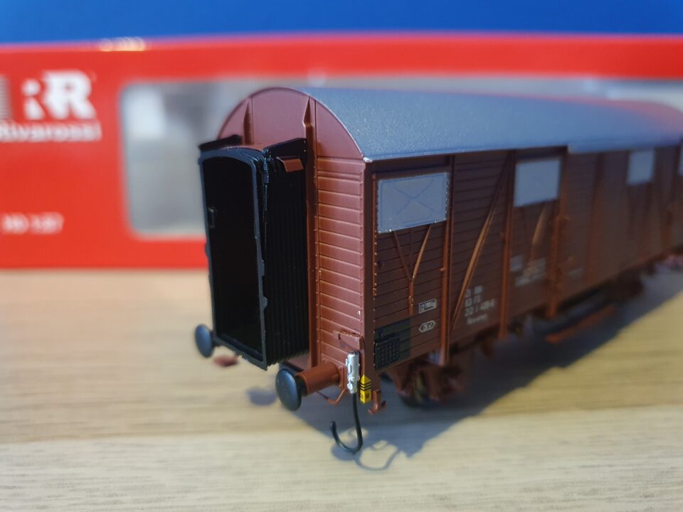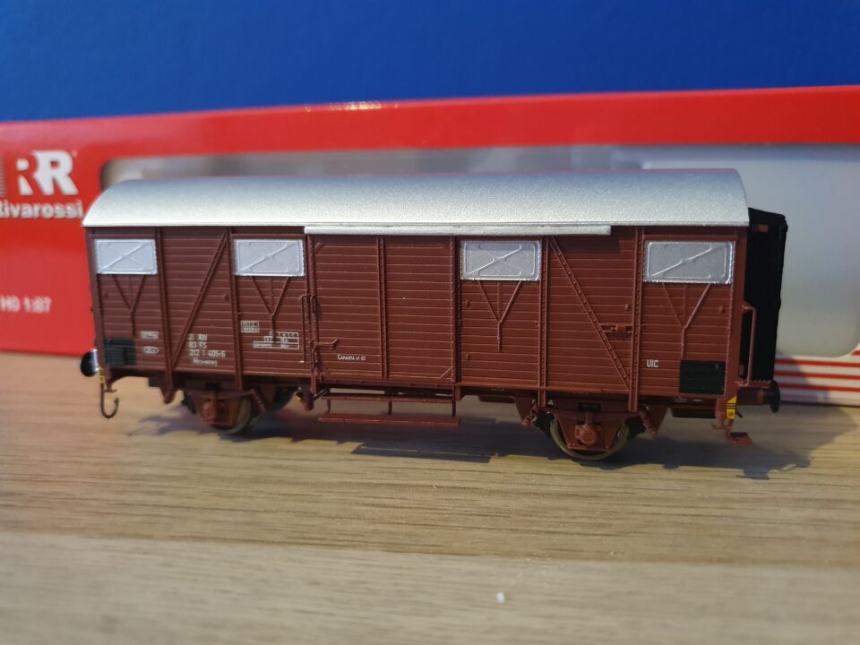 Je vends un wagon fermé FS avec soufflets Rivarossi réf. HR6311.1. Neuf, pièces de détail à monter. 35 euros plus port
