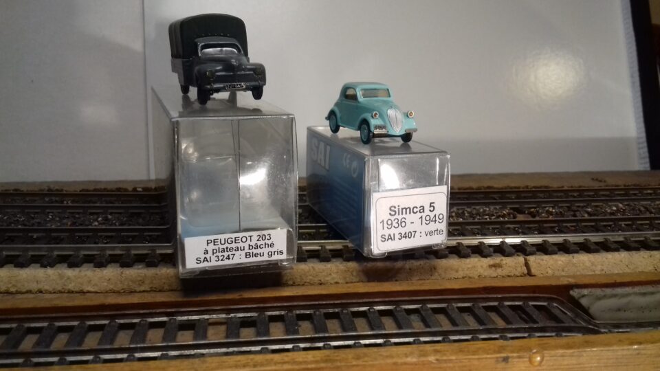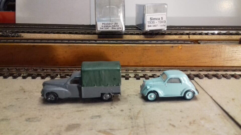 SAI en BO modeles metal ref 3407 Simca 5 (36 à 49) verte et ref 3247 fourgonnette à plateau baché bleu gris sur tous les modeles SAI planche metal(kit essuies glaces et retro à poser) reglement par cheque port en sus 6€