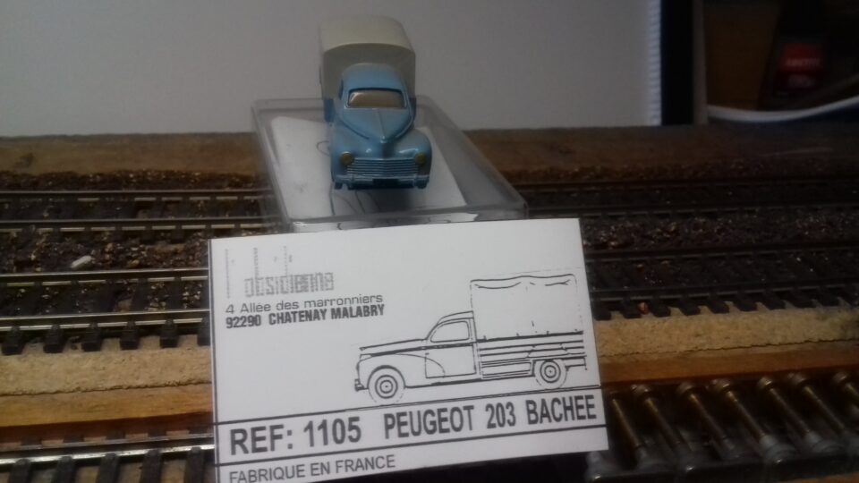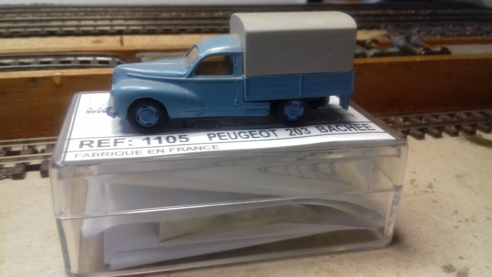 L'Obsidienne Peugeot 203 bachée ref 1105 kit resine monté fiche de montage jointe reglement par cheque port en sus 6€