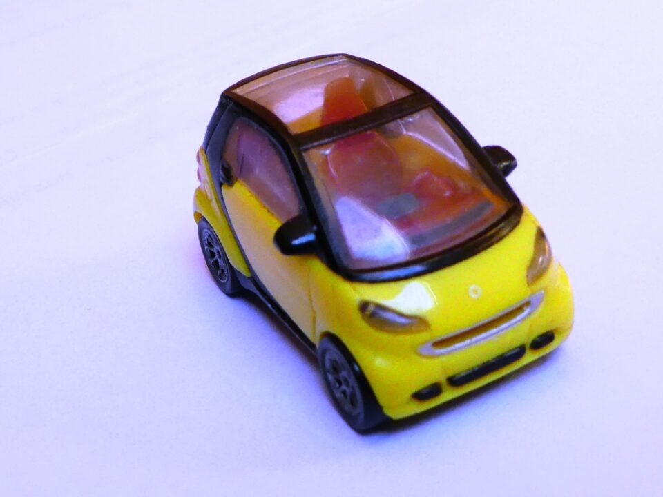 - Smart For Two HO de marque MPG, noire et jaune, avec aménagement intérieur, BE, sans boîte, 4 €.
