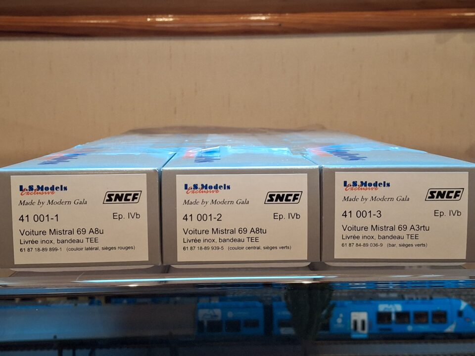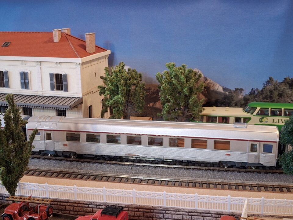 Vends 3 voitures Mistral 69 en excellent état dont voiture Bar. Attelages à élongations . Réf.41 001 1-2-3 Prix 215 Euros.