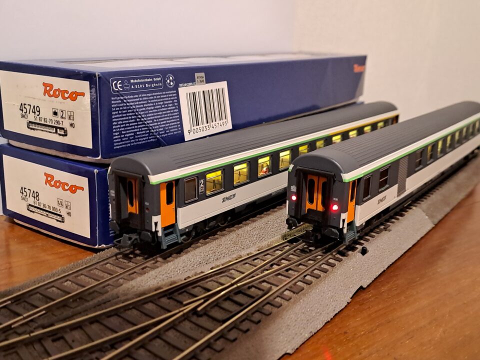 A vendre 2 voitures CORAIL VU , marque ROCO avec ECLAIRAGE et VOYAGEURS .