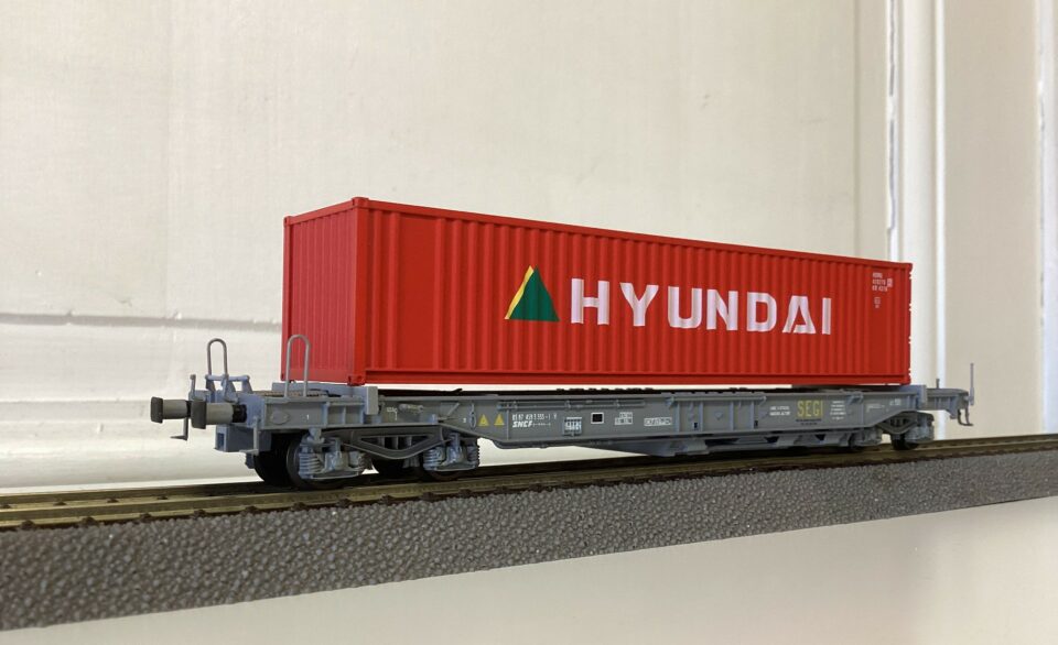 Wagon poche "SEGI" chargé d'un conteneur 40 pieds "HUNDAI"