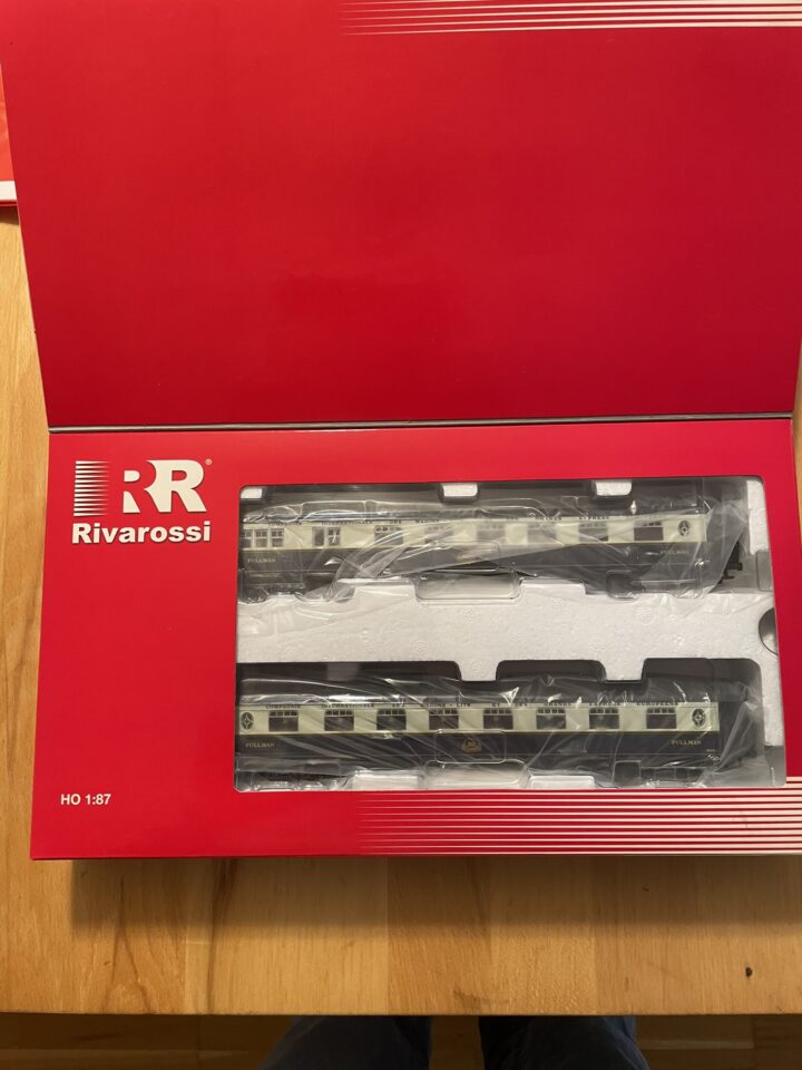Vends Rivarossi 4077 coffret de 2 voitures Pullmann Côte d'Azur neuves, une voiture restaurant et une voiture salon. Pièces de détail à monter. Prévoir frais de port 9 € en plus.