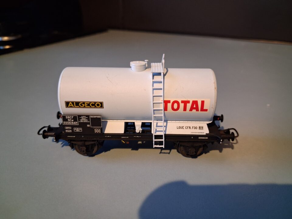 Vends ce wagon citerne à essieux TOTAL ALGECO HO référence WB-107 REE.
