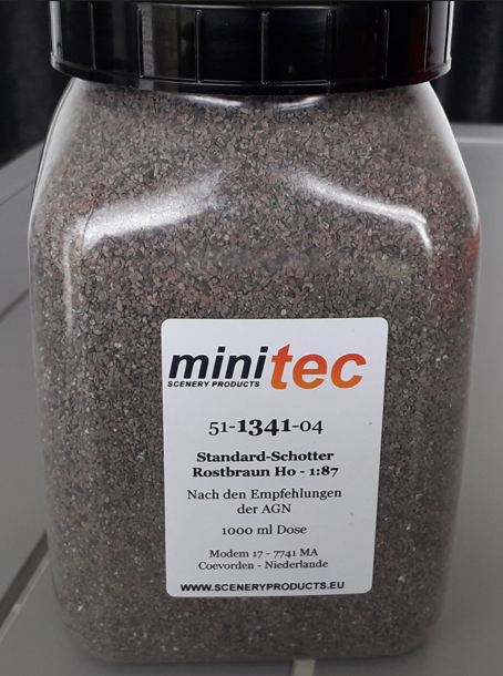 Vends ballast MINITEC en pot d'un litre, gris phonolithe et brun rouillé, 25,00€ le pot + 11,00€ pour frais de port en colissimo sans signature.