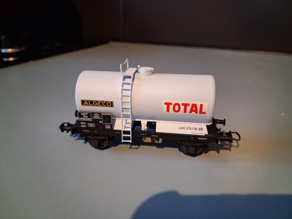 Vends ce wagon citerne à essieux TOTAL ALGECO HO référence WB-107 REE.