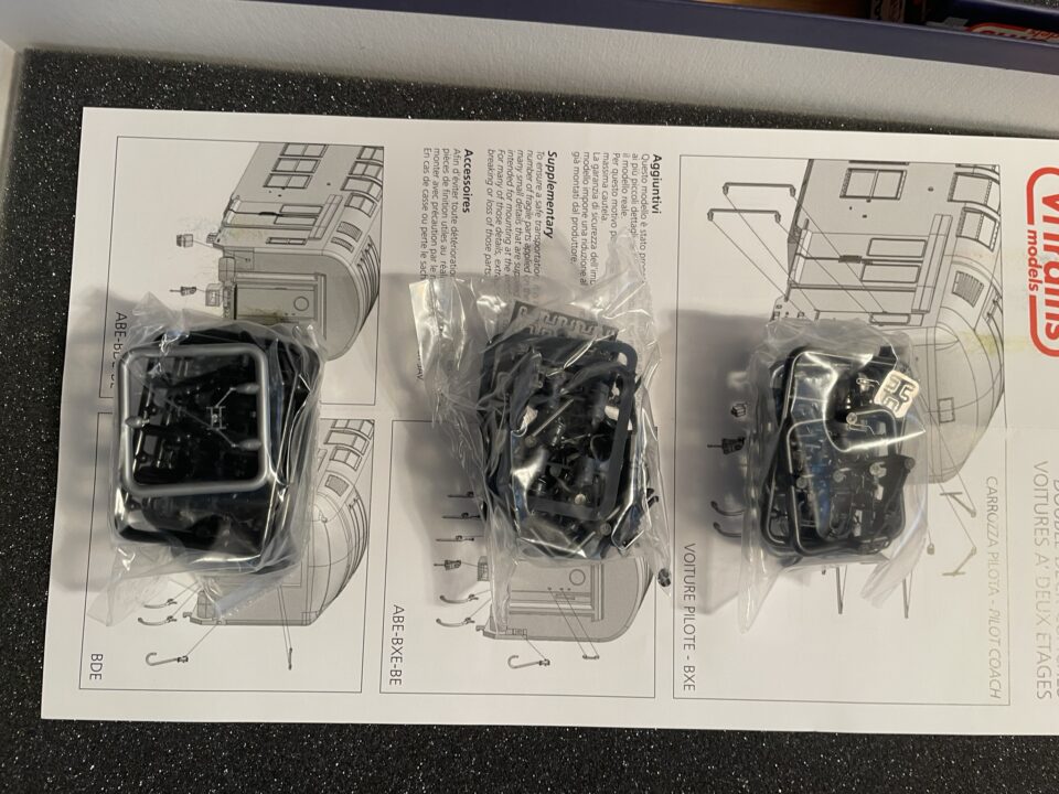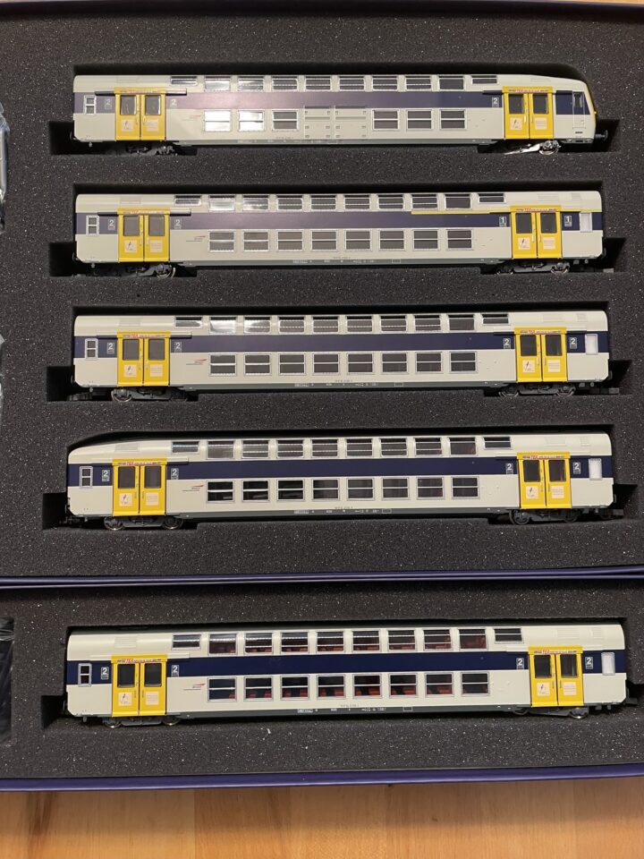 Vends ViTrains 1034+3046 rame de 5 voitures Nord Pas de Calais neuves en boîte d'origine avec notices et pièces de détail non montées. Franco de port.