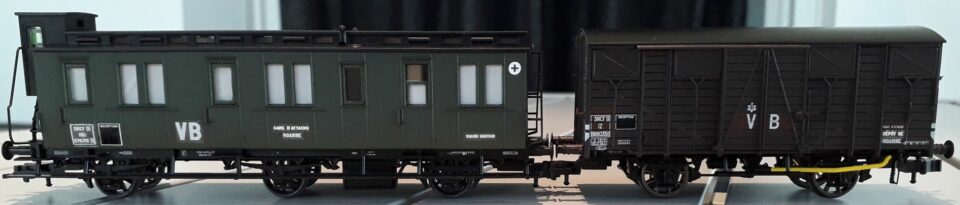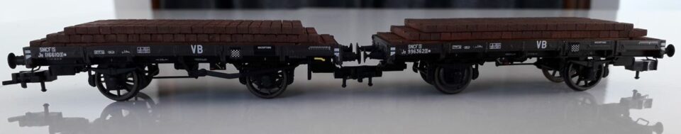 -Convoi identique avec un couplage trémie à ballast et un wagon plat ex Plm (WB-443) supplémentaires pour 420,00€.