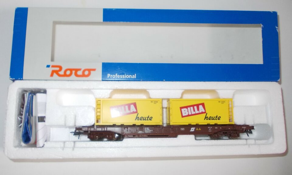 3127 ROCO Wagon a Poche Porte Containers OBB - (HO Matériel Remorqué)
